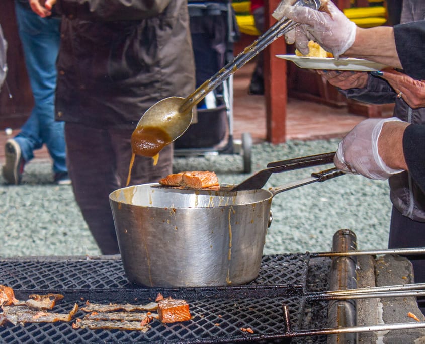 Alaska’s seafood is among the finest in the world, with king crab, salmon, halibut, cod, shrimp, and even oysters commonly found on local menus, especially in coastal towns. For visitors from the Lower 48, truly fresh Alaskan king crab is often a revelation. The same goes for the salmon: another “Big 5” (king, sockeye, coho, pink, and chum), all peak during July runs to deliver wild-caught fish with firmer flesh and richer flavor than the farmed varieties most people are accustomed to. In some ports, like Ketchikan and Skagway, servers might even be able to tell you exactly where the fish was caught or the name of the vessel that brought it in!